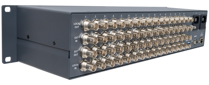Коммутационным элементом являются радиочастотные реле, обеспечивающие высокие параметры тракта в диапазоне до 5 ГГц, что позволяет коммутировать композитные аналоговые и последовательные цифровые форматы видеосигналов (PAL, SECAM, 3G/HD/SD-SDI, DVB-ASI).