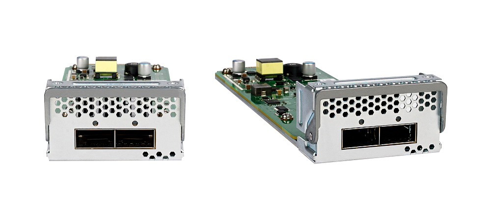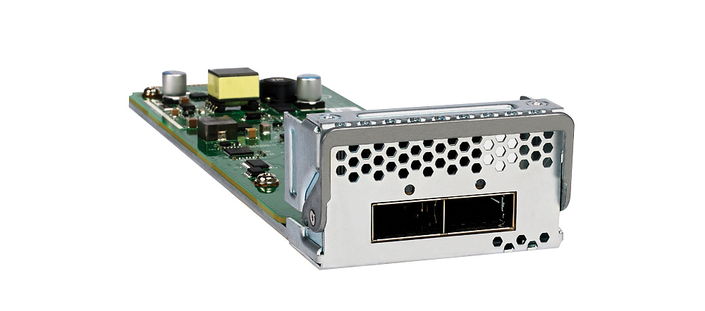 APM402XL — двухканальный оптический модуль расширения, предназначенный для использования в составе модульного шасси управляемого коммутатора NETGEAR M4300-96X. В состав APM402XL входят 2 оптических трансивера QSFP+ с разъёмами 40GBase-X QSFP+. Модуль обеспечивает передачу данных со скоростью до 40 Гбит/с.
