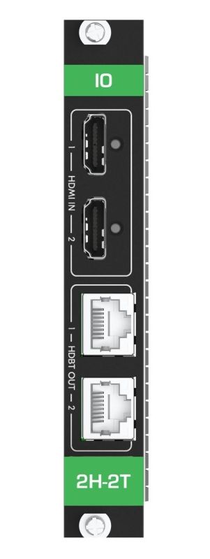 MC3-2H-2T — модуль с двумя входами HDMI и двумя выходами HDBaseT 3.0, предназначенный для использования в составе шасси совместимого мультиформатного модульного матричного коммутатора. Модуль MC3-2H-2T может устанавливаться в любой из слотов шасси матричного коммутатора. Входные сигналы модуля независимо переключаются на любой выход модульного матричного коммутатора, а любой сигнал на входе матричного коммутатора независимо переключается на любой из двух масштабируемых выходов модуля.