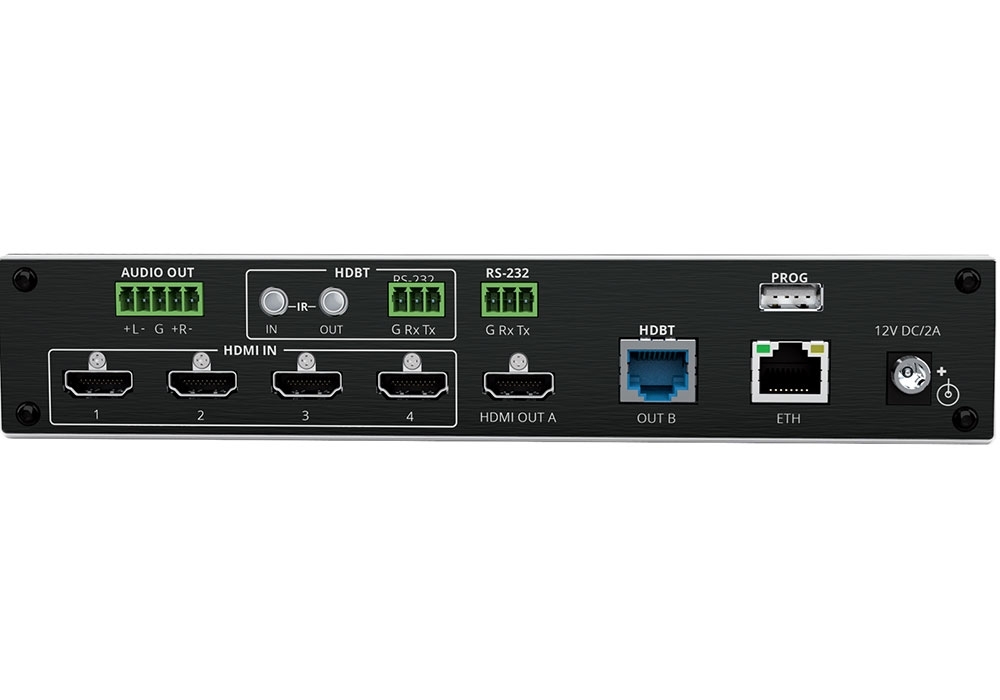 | Выходы | 1 HDMI, 1 HDBaseT (RJ-45), 1 балансное стерео аудио (5-конт. блок съемных клемм) |