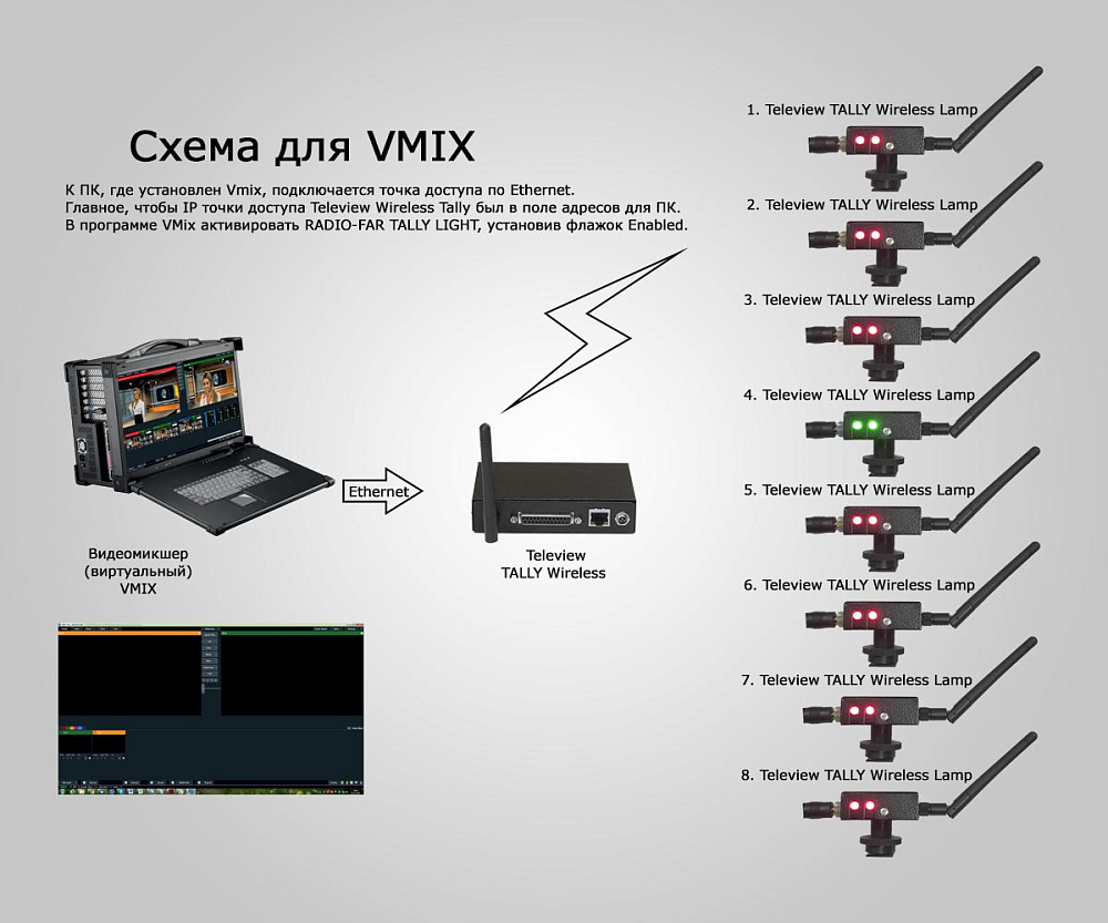 Teleview Wireless Tally Light (Tally wireless Lamp): Профессиональная беспроводная индикация «в эфире» для многокамерных студий