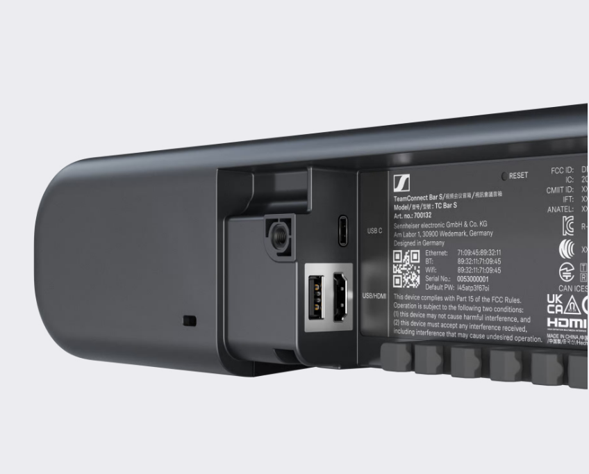 TC Bar S оснащен 4 микрофонами и 2 динамиками, что обеспечивает надежное качество звука Sennheiser на любой встрече. TC Bar S - это настоящий инструмент для решения проблем, обладающий такими преимуществами, как простота настройки, независимая от бренда интеграция, простота управления, высокое качество видео, безопасность и экологичность.