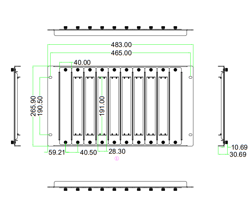 RK-10MT — Адаптер для вертикальной установки до 10 устройств KDS-7 в 19” аппаратурную стойку. Занимает в высоту 6U.