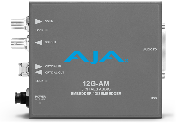 AJA 12G-AM — восьмиканальный эмбеддер/деэмбеддер аналогового звука с I/O 12G-SDI с поддержкой форматов до 4K / UltraHD. В моделях с оптоволокнным интерфейсом имеется возможность ввода / вывода одного канала по Fiber LC и ST. С помощью этого мини-конвертера вы сможете извлекать восьмиканальный аналоговый звук из входного 12G-SDI-сигнала, а также наоборот — интегрировать во входной SDI-сигнал аналоговый звук из внешнего источника.
