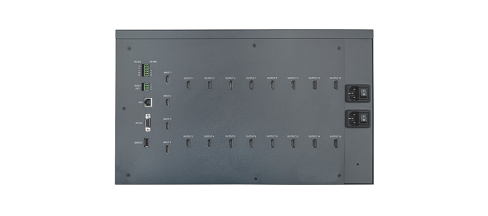 | Выходы | 16 HDMI; Стерео аудио (3-конт. блок съёмных клемм) |