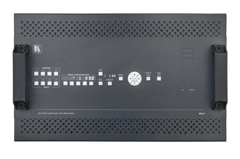 VW-9 — масштабатор, выполняющий функцию контроллера видеостены и мультиоконного процессора. Прибор имеет 4 входа и 10 выходов HDMI, обеспечивает бесподрывное переключение входов, повышающее и понижающее масштабирование сигнала в пределах разрешения 4K@60 Гц (4:4:4), поддержку видеостен любой размерности в пределах 10 дисплеев, а также различных режимов мультиоконного процессора. В устройстве имеются функции выбора эмбедированного аудио для видеостены с любого из 4-х входов, а также деэмбедирования аудио с выводом на аналоговый стереовыход. Гибкие возможности управления включают кнопки лицевой панели, экранное меню, Ethernet и встроенные веб-страницы с удобным интуитивно-понятным пользовательским интерфейсом, а также команды, передаваемые по интерфейсам RS-232, RS-485 и RS-422.
