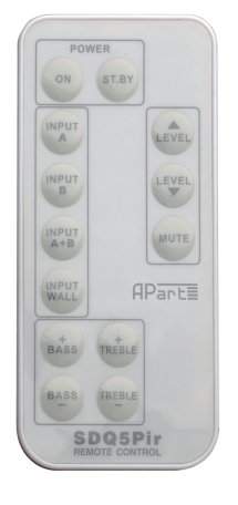 Настенная акустика APart SDQ5PIR-W — активная акустическая система для профессиональных инсталляций. Включает активную и пассивную колонки с усилителем 2x30 Вт. Двухполосная конструкция (1″ ВЧ, 5.25″ НЧ), частотный диапазон 45 Гц — 20 кГц. Управление по RS-232 и ИК-пульту. Для конференц-залов, ресторанов и домашних кинотеатров.