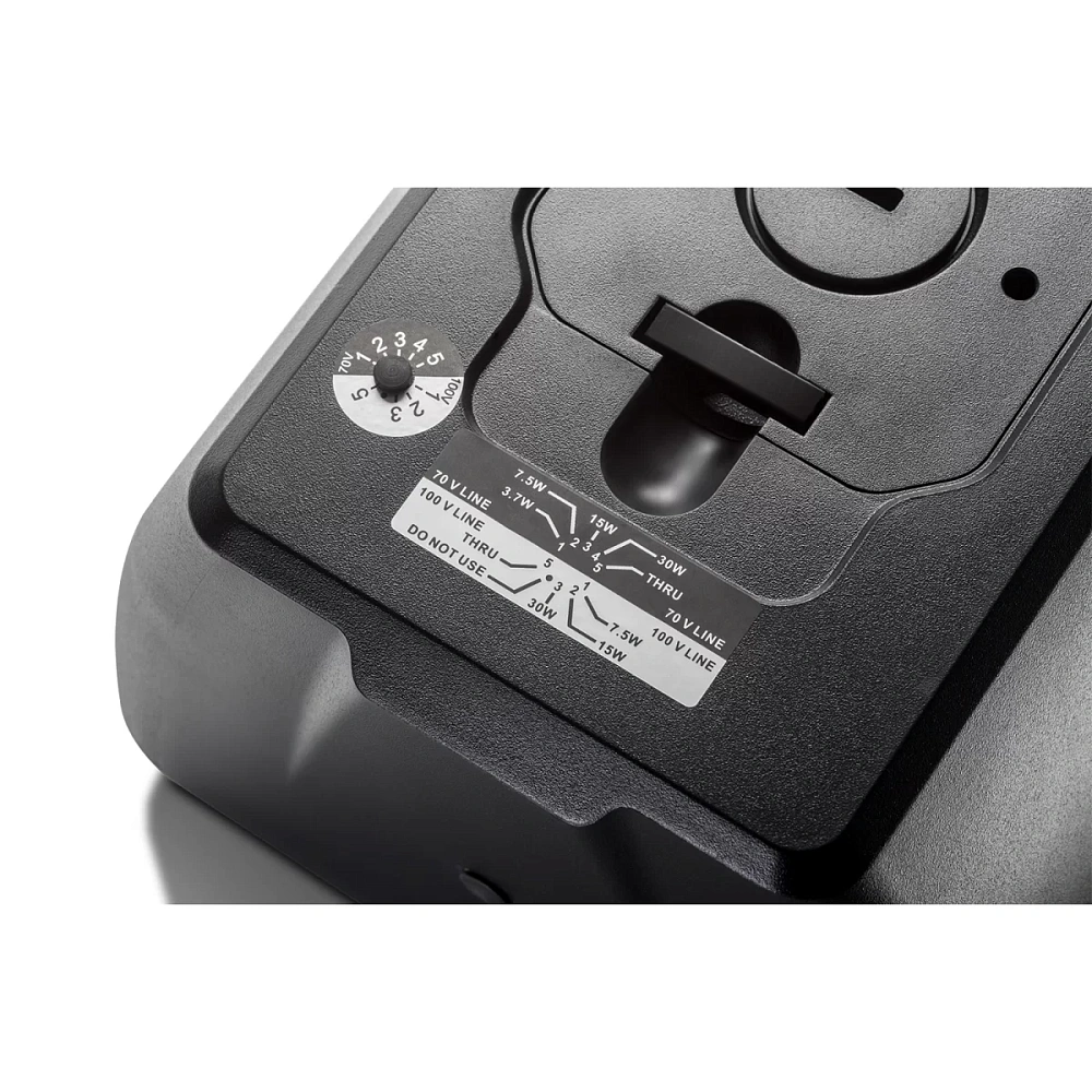 Для максимальной совместимости с различными системами Control 25-1 оснащен встроенным многоотводным трансформатором мощностью 30 Вт для работы в распределенных линиях 70/100 В. Это позволяет использовать длинные кабельные линии без потери качества и упрощает интеграцию с существующими системами оповещения и фонового озвучивания. В зависимости от требований проекта можно выбрать необходимую мощность на трансформаторе: