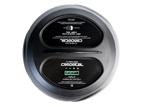 CVGaudio CS608TBl – двухполосная подвесная акустическая система для профессиональных высококачественных систем музыкальной трансляции и речевого оповещения. Одним из основных преимуществ данной модели является идеальный для инсталляции на открытых потолках форм-фактор - CS608TBl имеет очень элегантный, современный черный пластиковый корпус, который подвешивается с помощью тросика к черновому потолку благодаря чему акустическая система может быть незаметно вписана в любой интерьер вне зависимости от высоты потолка, в том числе может быть установлена за потолком типа «грильятто». Благодаря вышесказанному CS608TBl фактически безальтернативный вариант для организации качественной трансляции фоновой музыки в крупных помещениях с высокими открытыми потолками, таких как большие магазины ангарного типа, большие тренажерные залы фитнес клубов, вокзалы и аэропорты, крупные open-space офисы, столовые или рестораны с большим общим залом и высоким потолоком, фойе отелей и так далее. CVGaudio CS608TBl может работать как в составе 100V трансляционных линий, так и с низкоомными усилителями. За защитной металлической сеткой располагается круговой селектор, с помощью которого можно выбрать одну из шести доступных мощностей в 100V/70W режиме - 32W / 16W / 8W / 4W / 2W / 1W или перевести акустическую систему в низкоомный (Low-impedance) режим. В этом режиме сопротивление у данной модели – 8ohm, мощность (RMS) – 60W. CVGaudio CS608TBl – двухполосная акустическая система. Купольный твитер размером 1” (25,4mm) отвечает за высокочастотную составляющую воспроизводимого звукового диапазона. Он изготовлен из полимерного материала майлар и имеет очень читаемое и яркое звучание. Вуфер воспроизводящий средние и низкие частоты имеет размер 6,5” (165mm), изготовлен из полипропилена и крепится на гибком резиновом подвесе. Не только за счет качественного вуфера, но во многом и благодаря достаточно крупному, правильно рассчитанному корпусу с двумя фазоинверторами данная модель звучит удивительно басовито и убедительно. Корпус изготовлен из белого ABC пластика. Лицевая часть на которой находится диффузор, фазоинверторы и селектор переключения мощностей и режимов работы скрыта съемной металлической декоративной сеткой. В верхней части корпуса имеется металлическая дуга с тремя отверстиями для фиксации троса и соответственно подвеса к потолку. Крепить трос можно с помощью карабинов, также входящих в комплект поставки или использовать любые другие винтовые зажимы. Крепление к потолку не входит в комплект поставки. Подключение спикерного кабеля производится через съемный 4-х контактный кабельный терминал типа EuroBlock. В разъеме предусмотрены контакты для входа и выхода – для параллельного подключения следующей акустической системы.