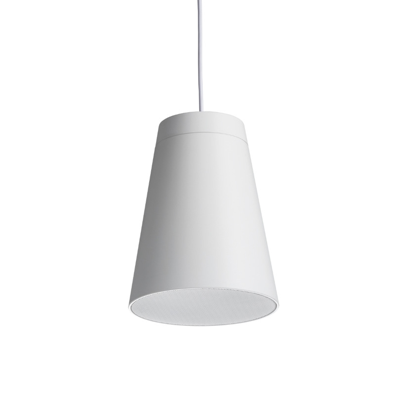 Конструкция ориентирована на максимальную эстетику установки: заднюю крышку можно закрепить после монтажа, скрыв все точки подключения и элементы подвеса на торце громкоговорителя. Потолочные соединения скрываются специальной кабельной крышкой, что делает визуально чистой и профессиональной установку даже на открытых пространствах.