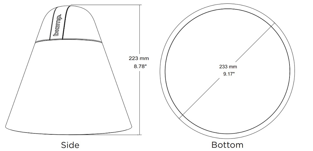 BIAMP P30DT-BL – двухполосная акустическая система подвесного типа для организации качественного звукового оформления помещений с нестандартными архитектурными формами и высотой потолков более 5 м. Она оборудована высокоэффективной связкой из 4.25" НЧ вуфера с бумажным диффузором и 1" ВЧ твитера с мягким куполом, которые обеспечивают выходную мощность на уровне RMS 50 Вт (peak 200 Вт) при подключении 16 Ом и 30/15/7.5/3.75 (1.75) Вт при работе в линиях 100 (70) В. Подключение к акустическим линиям выполняется через клеммный терминал типа Euroblock 4-pin. Для выбора режима и выходной мощности АС под торцевой крышкой размещен поворотный селектор.
