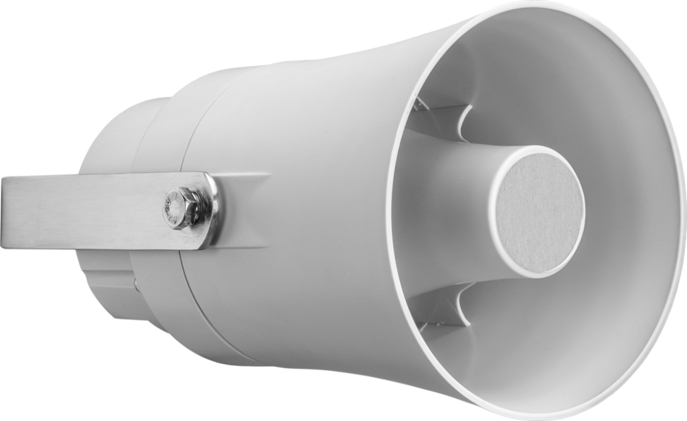 Рупорная акустика BIAMP EN-H10-G — рупорный громкоговоритель для промышленного использования. Компрессионный драйвер и трансформатор 100В (1,25-2,5-5-10 Вт), сертификация EN54-24. Ударопрочный корпус из ABS-пластика, защита IP66. Для помещений и улицы.