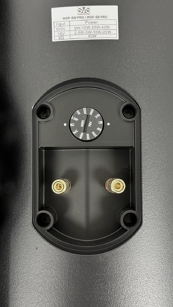 Всепогодная акустическая система SVS Audiotechnik WSP-6В PRO обладает эксклюзивной технологией оптимального усиления басов, степенью защиты IP66 и всепогодным динамиком, который подходит для использования как внутри помещений, так и на открытом воздухе. Она оснащена переключателем питания 70В/100В и 8Ω, а также быстрой установкой с помощью водонепроницаемых кронштейнов. В ней используются 1 низкочастотный динамик диаметром 6,5 дюйма и 1 твитер диаметром 1 дюйм.