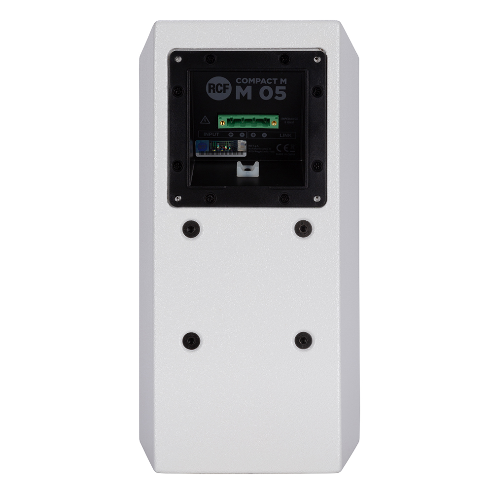 COMPACT M 05 W – двухполосная пассивная акустическая система с широким спектром применений. Компактный громкоговоритель обеспечивает высокий уровень звукового давления без искажений. Благодаря небольшому размеру COMPACT M 05 подходит для проектов, где по требованиям дизайнеров громкоговорители должны быть не заметны в интерьере. RCF COMPACT M 05 W предназначен для использования в ближнем поле, обладает высокой чувствительностью и имеет широкий частотный диапазон. Монтажные втулки на задней и боковых сторонах кабинета позволяют крепить COMPACT M 05 как на стену, так и на потолок. Можно заказать громкоговорители COMPACT не на стандартных разъемах EUROBLOCK, а на Neutrik SpeakON female.