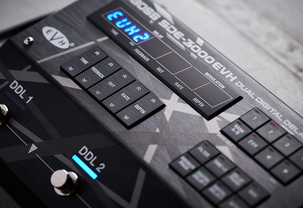 Оригинальная SDE-3000 была моно задержкой, и Эдди использовал два устройства с уникальными настройками на каждом для достижения своего звучания. SDE-3000EVH объединяет два SDE-3000 в одной педали, а также банк пресетов EVH, который позволяет загрузить все настройки для двух задержек одним касанием.