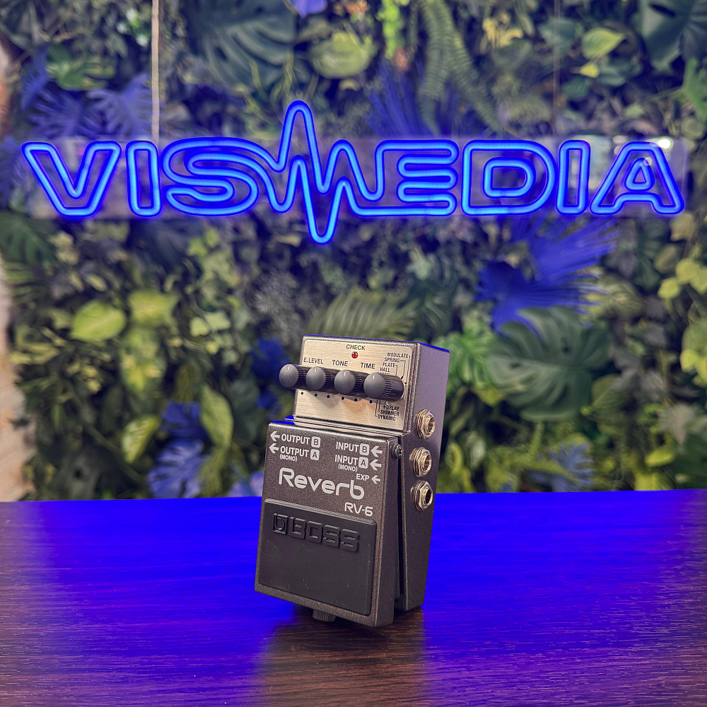Педаль эффектов Boss RV-6 — компактная педаль реверберации с 8 режимами (Room, Hall, Plate, Modulate, Shimmer, Dynamic, Delay+Reverb, Spring). Динамический режим подстраивается под игру. Студийное качество звука для гитары и других инструментов.