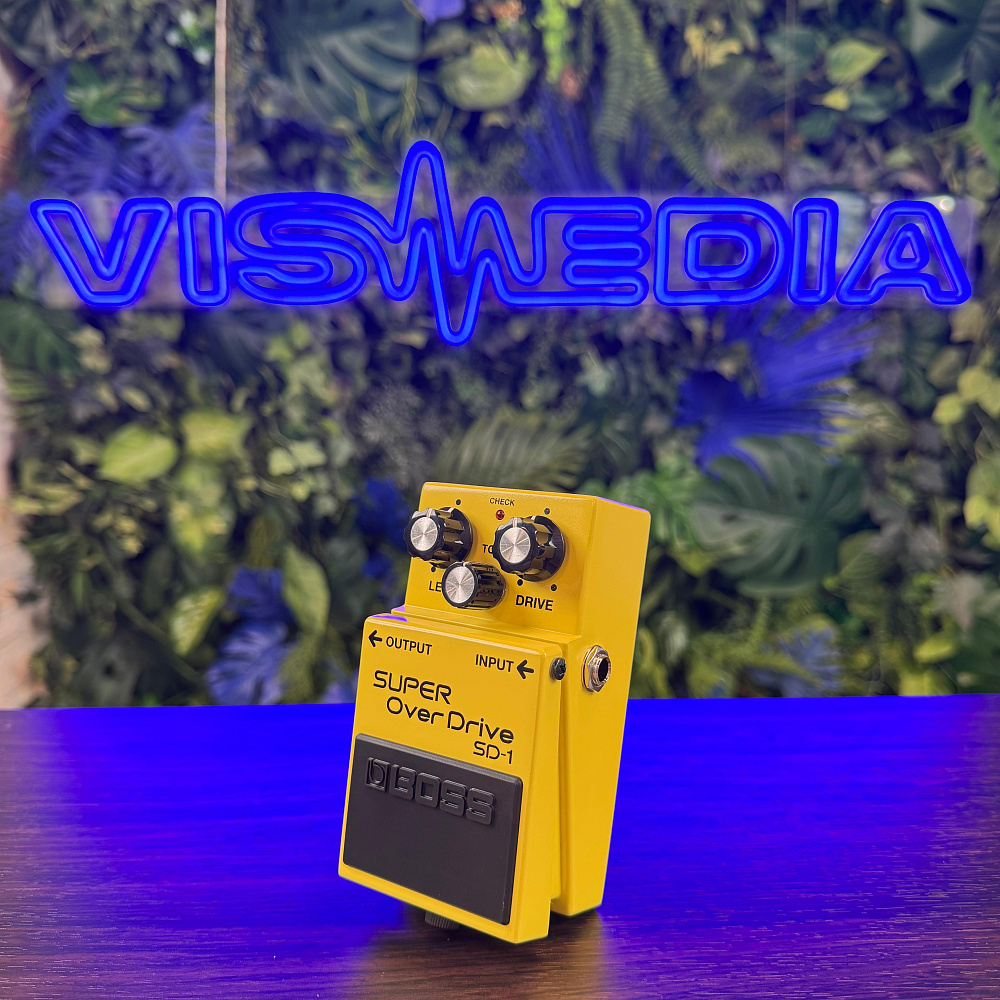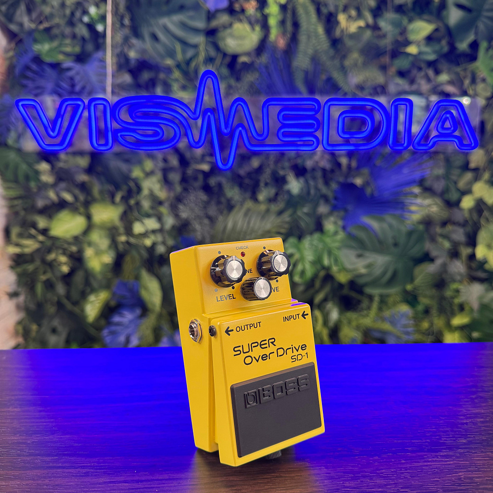 Гитарная педаль эффектов Boss Super Overdrive SD-1. Использует асимметричную схему перегрузки для получения тёплого мягкого - характерно-лампового эффекта Overdrive. Имеет ручку Tone, которая осуществляет точную настройку требуемого звучания.