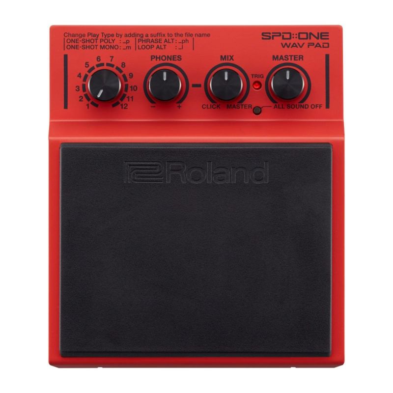 Работа с пэдом SPD::ONE WAV PAD отличается исключительной простотой. Для выбора звуков нет необходимости плутать по вложенным меню со сложной структурой или использовать комбинации кнопок. Достаточно всего лишь установить селектор банка в одну из 12 позиций и ударить по пэду. С помощью всего лишь четырех расположенных на лицевой панели регуляторов можно в режиме реального времени управлять всеми параметрами пэда, в том числе настраивать тембры и осуществлять контроль за балансом громкости.