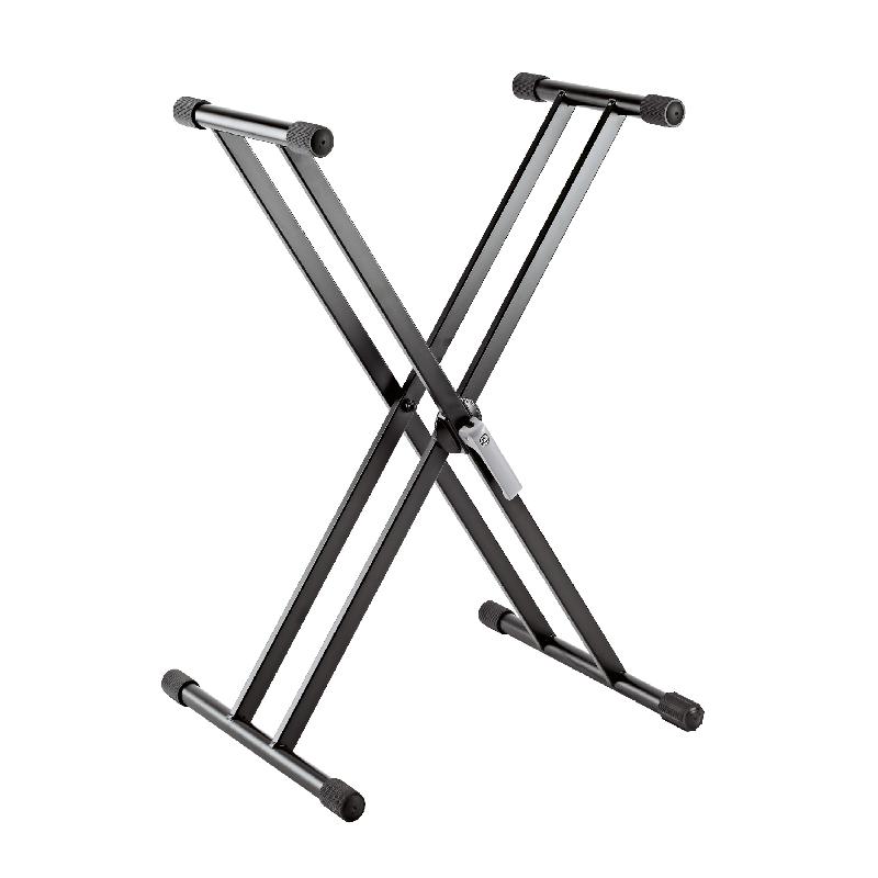 K&M 18997-000-55 - облегчённая, но вместе с тем прочная стойка для клавишных с двойной рамой. Эргономичный зажимной механизм позволяет складывать и раскладывать стойку легко и быстро. Крепкий металлический узел обеспечивает регулировку высоты с шагом в 5°. Такой короткий интервал позволяет наиболее комфортно отрегулировать высоту инструмента.