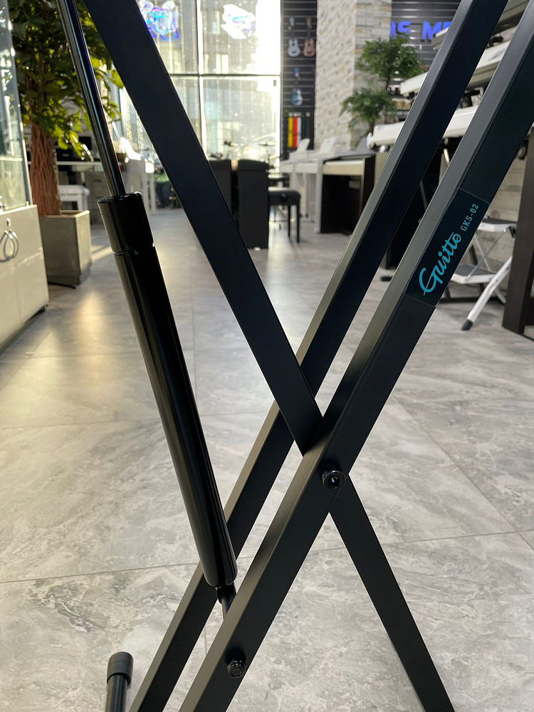 Стойка под клавиши Guitto GKS-02 — двойная Х-образная стойка для клавишных инструментов. Регулируемая высота 508–1016 мм, нагрузка до 80 кг. Пневматическая пружина для легкой установки. Подходит для синтезаторов и цифровых пианино от 37 до 88 клавиш.