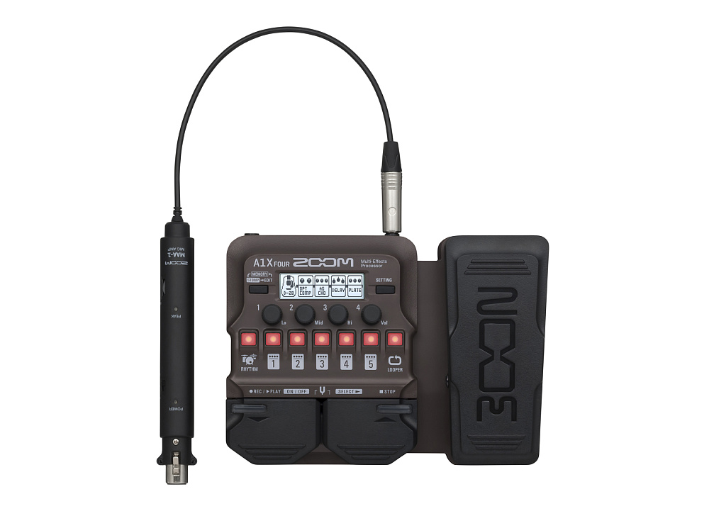 Zoom A1X FOUR – это первый процессор мультиэффектов, созданный для различных струнных и духовых акустических инструментов. Он оснащен набором специально созданных эффектов, встроенным лупером и драм-машиной.