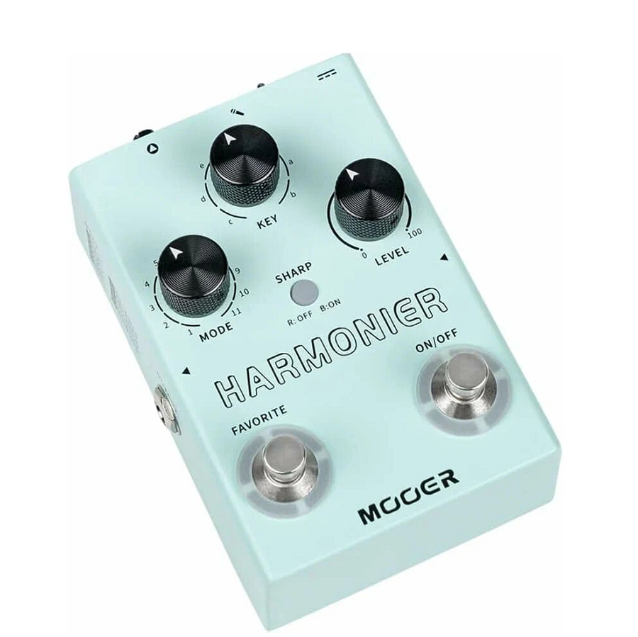 Вокальная педаль Mooer Harmonier — педаль гармонайзера для вокалистов. 12 тональностей по 11 гармонических режимов, 7 слотов пресетов, встроенная реверберация. Поддержка микрофона и гитары одновременно — идеальный инструмент для создания бэк-вокала и сложных гармоний.