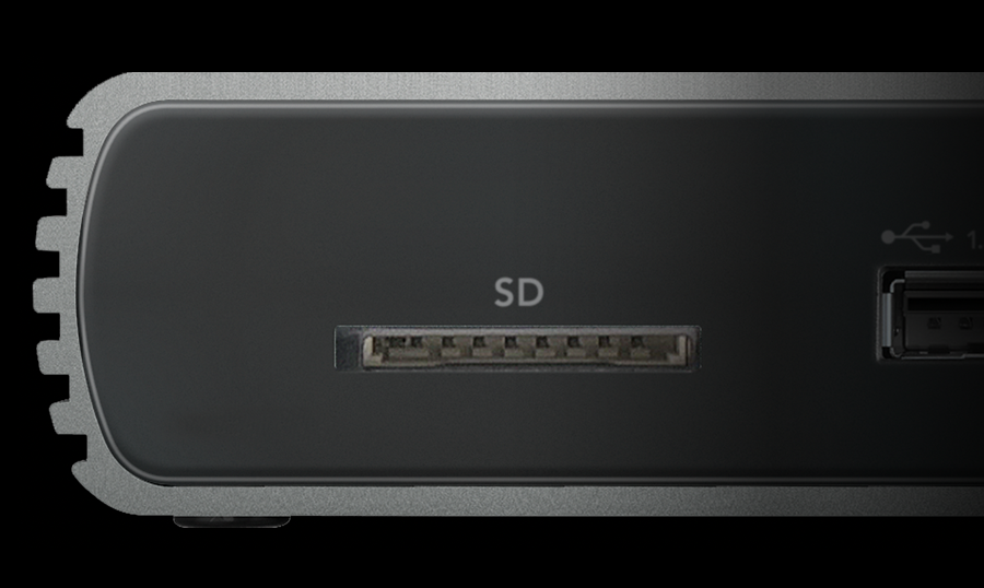 Входящий в комплект слот для чтения SD-карт совместим с картами памяти форматов SD, SDHC и SDXC и поддерживает скорость чтения до 300 МБ с с карт UHS-II SDXC для быстрой выгрузки и видео или других данных.