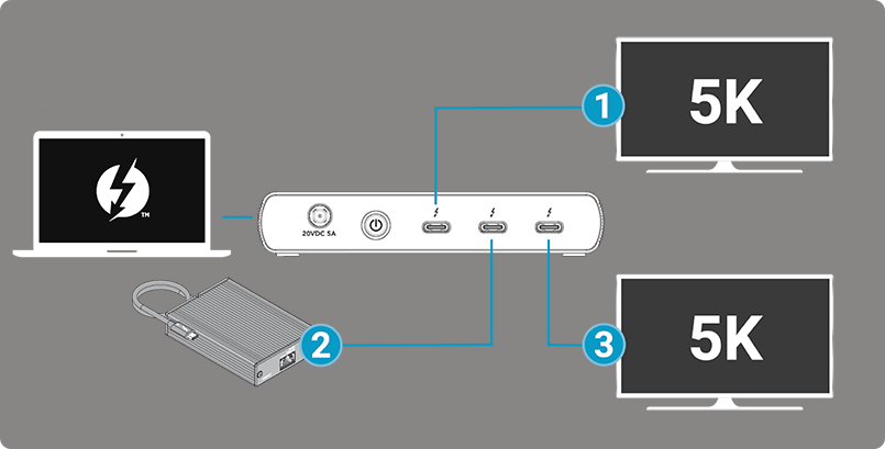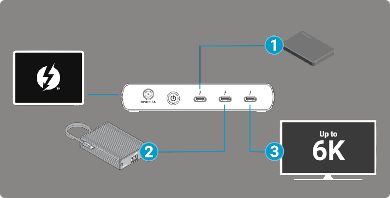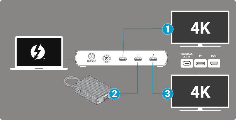 Идеально подходит для работы с Windows и Mac с портами Thunderbolt 3 и 4 (включая Mac Apple M1 с двумя портами Thunderbolt / USB4). Подключите хаб и создайте три отдельных независимых цепочки расширения Thunderbolt. Добавляйте и отключайте устройства из одной цепочки, не затрагивая другие.