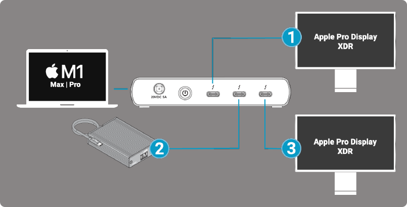 - Порт 1: Apple Pro Display XDR или 4K-дисплей