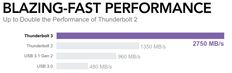 Echo Express SE I — Thunderbolt 3, реализует всю мощь пропускной способности шины Thunderbolt (40Gbps), которая имеет вдвое большую пропускную способность по сравнению с Thunderbolt 2.