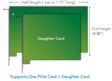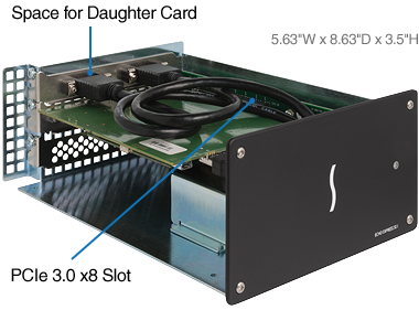 Шасси Sonnet Echo Express SE I имеет слот PCIe 3.0, поддерживающий установку одной платы половинной длины (до 19,6 см), полной высоты и одинарной или двойной ширины. Что такое"двойной ширины"? Некоторые специальные платы, как, например, RME HDSPe MADI FX, Blackmagic Design DeckLink 4K Extreme и Lynx AES16e 50, обладают дочерней платой, предоставляющей дополнительные коммутационные возможности для основной платы. При этом дочерняя плата требует дополнительного пространства без выделения отдельного
