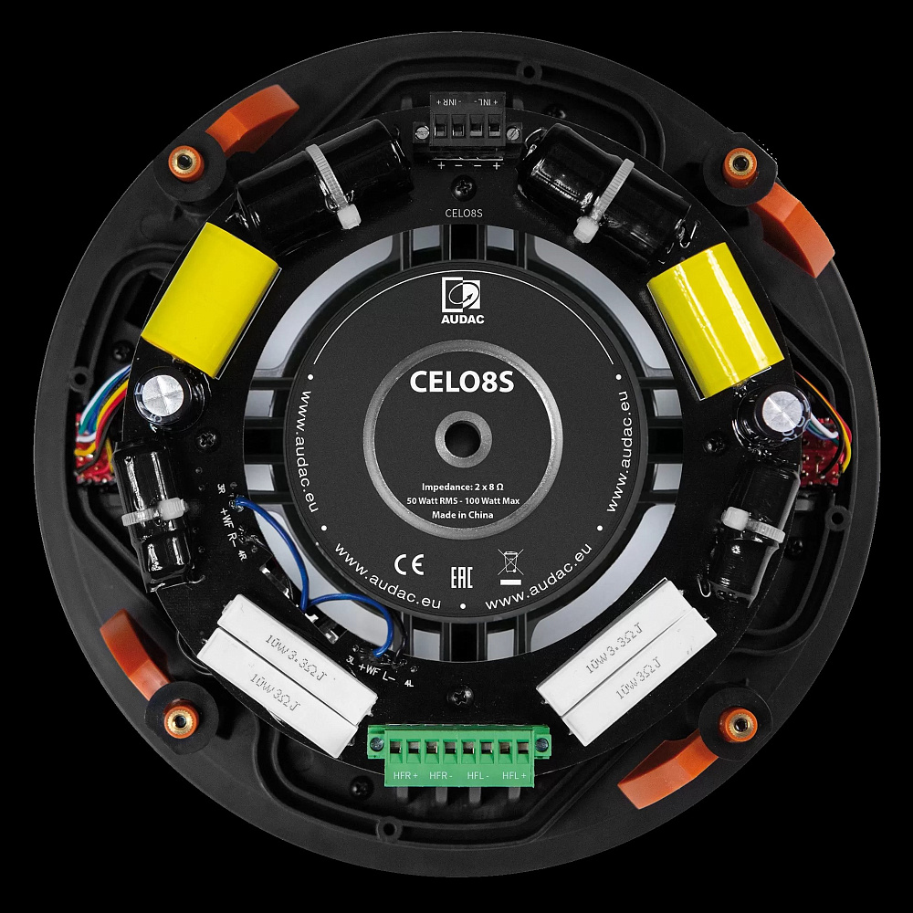 CELO8S - Встраиваемый потолочный сабвуфер класса Hi-End. Крепление Quick Fix. Быстросъемный гриль SlimLine™ на неодимовых магнитах. Динамик с двойной катушкой. Встроенный кроссовер для подключения саттелитов. Корректор фазы и аттенюатор на три положения: -3 dB / 0 dB /+3 dB.