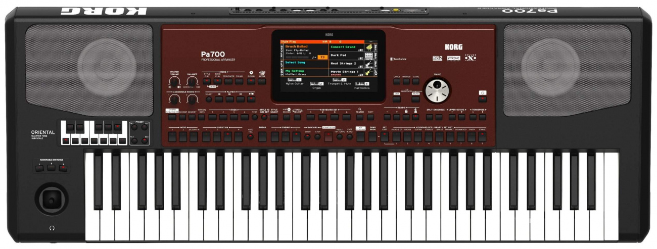 KORG Pa700-OR Oriental - это профессиональная аранжировочная станция, имеющая 61 клавишу и богатый набор восточных звуков. Клавиатура синтезатора динамическая. В базе звуков находится 1700 самых разных пресетов, среди которых 512 пользовательских банков и 256 ударных инструментов. Среди 370 стилей автоакомпанемента музыканты смогут найти то, что поможет выразить их музыкальное творчество. Полифония синтезатора составляет 128 нот. Секция эффектов представлена как стандартными эффектами, типа холл, хорус, мастер-компрессор и пр, так и оригинальными эффектами DSP.