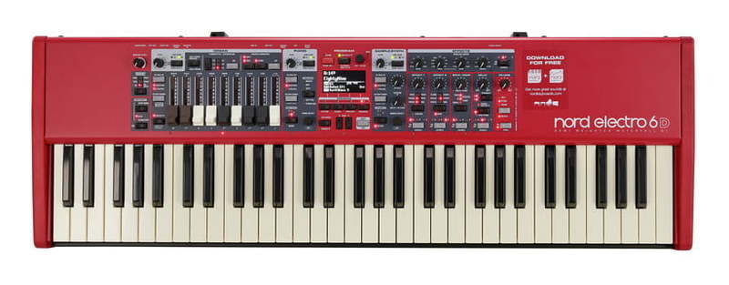Синтезатор Clavia Nord Electro 6D 61 — портативная сценическая клавиатура с 61 полувзвешенной клавишей. Три независимые секции: орган B3/Vox/Farfisa, фортепиано (1 Гб памяти) и сэмплирующий синтезатор (512 Мб). 120-голосная полифония для фортепиано, 9 регистровых рукояток, мощная секция эффектов. Плавные переходы между программами, вес 8.1 кг. Идеальный инструмент для гастролирующего клавишника.