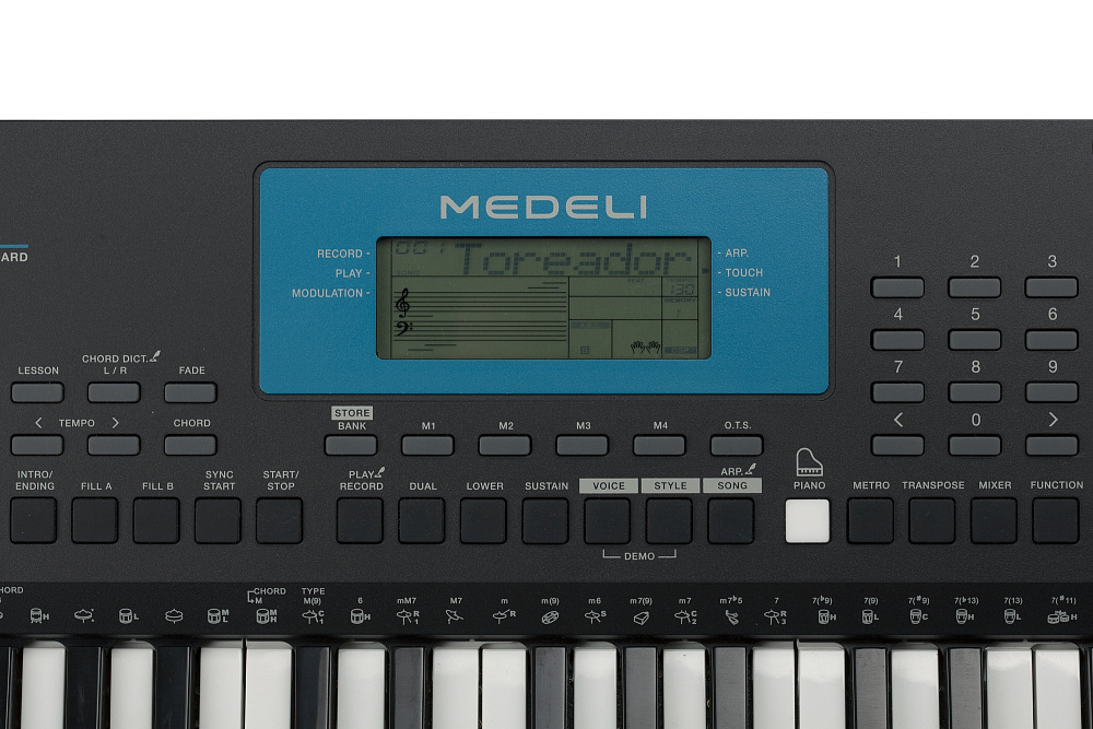 Синтезатор Medeli M211K — 61-клавишный синтезатор с чувствительной к нажатию клавиатурой. Полифония 32 голоса, 486 тембров, 200 стилей автоаккомпанемента. Встроенный арпеджиатор, эффекты реверберации и хоруса. Компактный и функциональный.