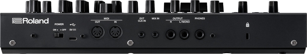 | Разъемы | Стерео 1/4-дюймовый телефонный тип, OUTPUT (L/MONO, R): 1/4-дюймовые штекеры, MIX IN: Стереофонический миниатюрный джек, EXT CLK IN: миниатюрный моноджек, MIDI-разъемы (IN, OUT), Порт USB: USB Type-C(R) (аудио, MIDI) |
