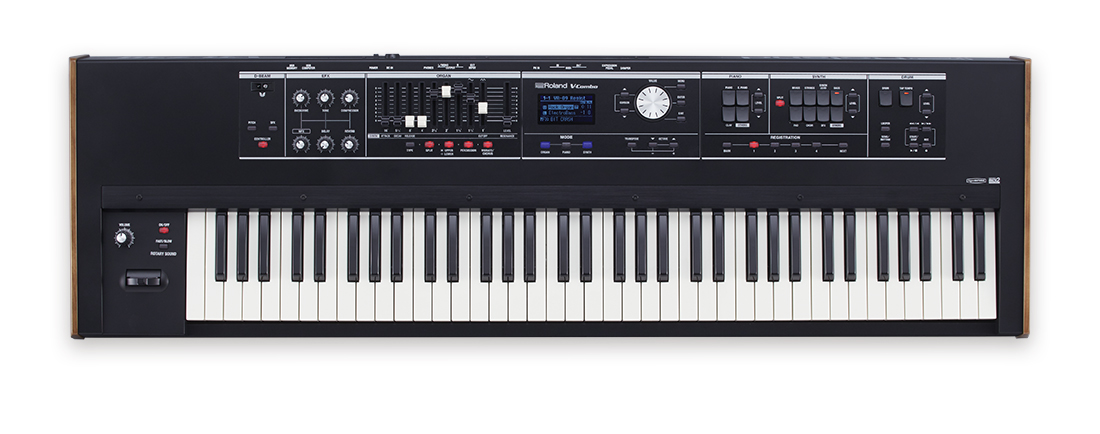 Синтезатор Roland VR-730 — профессиональный комбо-синтезатор с 73-нотной водопадной клавиатурой для живых выступлений. Аутентичные звуки виртуального тонального органа, электропиано, роялей и синтезаторов. Вес всего 9.9 кг, работа от сети или батарей, встроенные ротационные эффекты и бесплатное приложение-редактор для iPad.