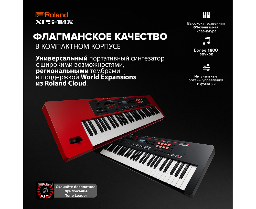 Roland XPS-10X объединяет ключевые возможности флагманской модели XPS-60 в более компактной и удобной форме. Более 1600 тембров — от акустических инструментов до синтезаторов — позволяют охватить любой музыкальный стиль, включая региональные народные инструменты. Дополнительно вы можете расширять звуковую библиотеку, устанавливая коллекции World Expansion через Roland Cloud.
