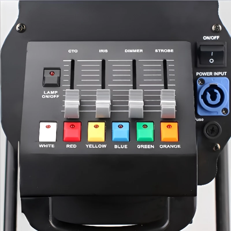 Цветовая гамма включает 5 цветов (ROYGB) + белый, а также три предустановки цветовой температуры CTO (3200 К, 4500 К, 6500 К и 8500 К). Это позволяет быстро подобрать оптимальный свет для любого сценария: от тёплого театрального до холодного студийного.
