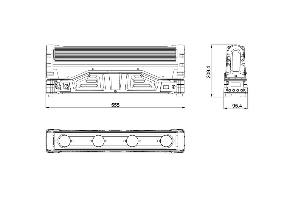 DMX-512: Сердцем управления является поддержка протокола DMX-512, позволяющая интегрировать прибор в любые системы. Доступно три режима: 1 канал (для базового управления), 22 канала и 26 каналов. Выбор режима определяется сложностью создаваемых эффектов. Так, в 22- и 26-канальных режимах появляется возможность управлять светом и цветом каждого из 4 светодиодов по отдельности, открывая безграничные возможности для создания оригинальных шоу-программ.
