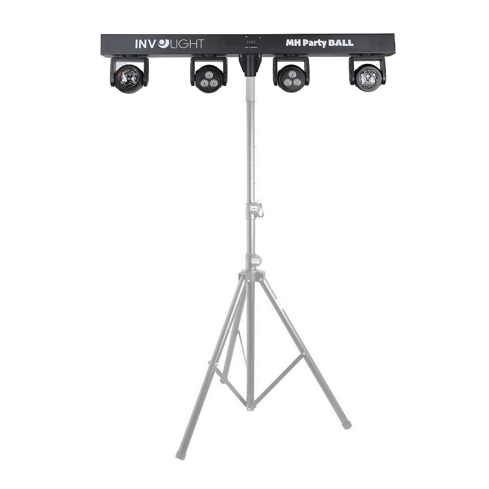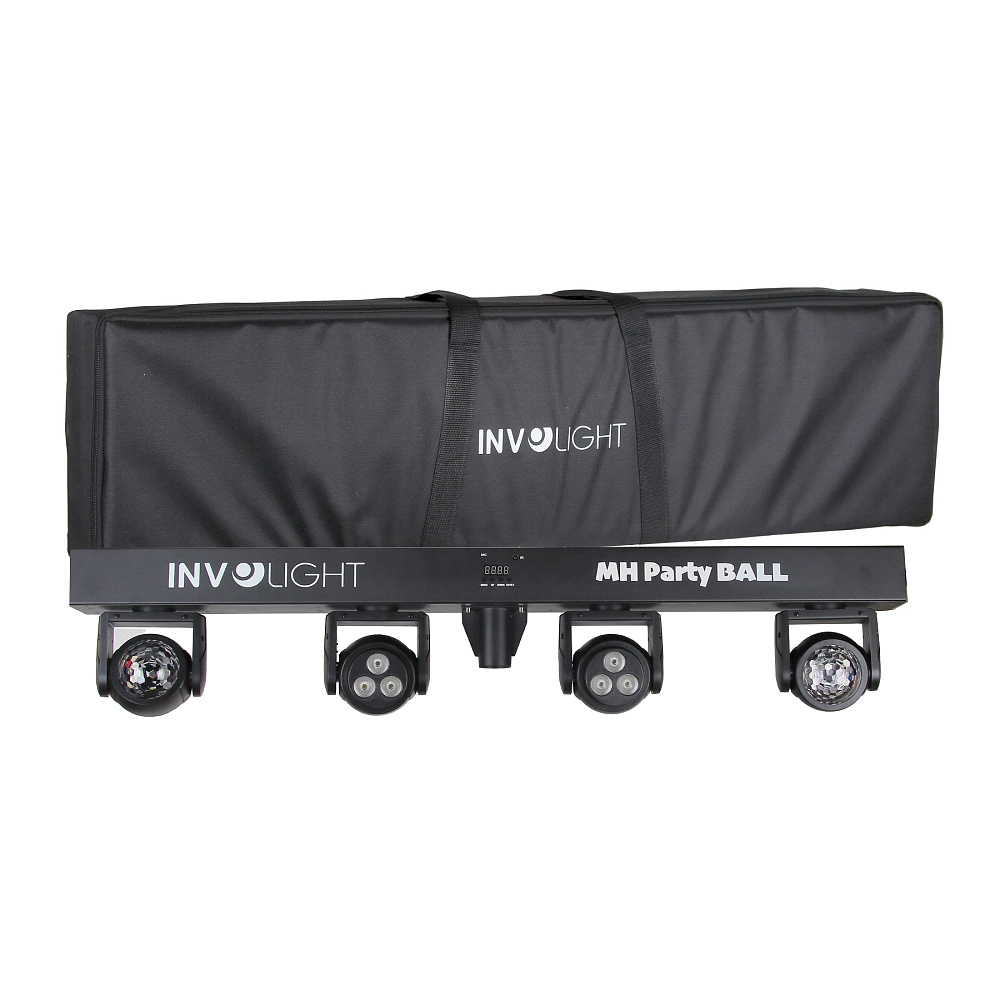 Превратить обычное мероприятие в динамичное световое шоу — задача, решить которую помогают специальные эффекты. Однако развертывание сложных систем требует времени, опыта и большого бюджета. INVOLIGHT MH PARTY BALL — это мобильный комплект, который объединяет в портативной конструкции сразу четыре вращающиеся головы с различными типами световых эффектов. Это полноценная световая панель, созданная для того, чтобы небольшие концерты, выступления мобильных диджеев, вечеринки в клубах и караоке-барах стали ярче, не требуя при этом сложного монтажа.