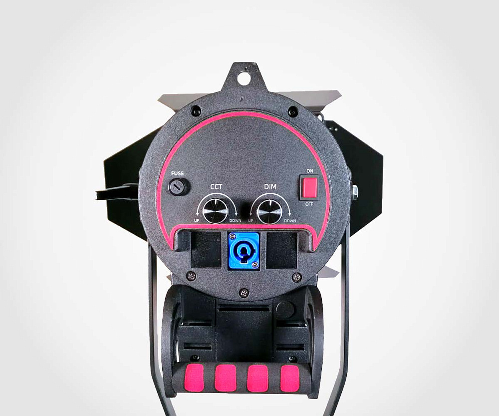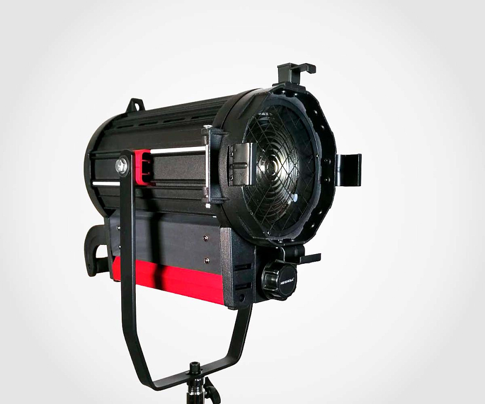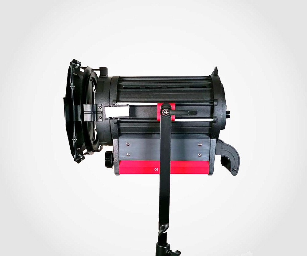 Прожектор оснащён классической линзой Френеля, которая обеспечивает мягкое, равномерное световое пятно без жёстких границ. Ручная регулировка фокуса позволяет плавно менять угол раскрытия луча от 20° до 60° (по другим данным — от 18° до 58°). Это даёт возможность использовать прибор как для узкого акцентного луча, так и для широкой заливки пространства. Встроенные шторки (входят в комплект) помогают дополнительно формировать и ограничивать световой пучок, создавая нужную световую картину.