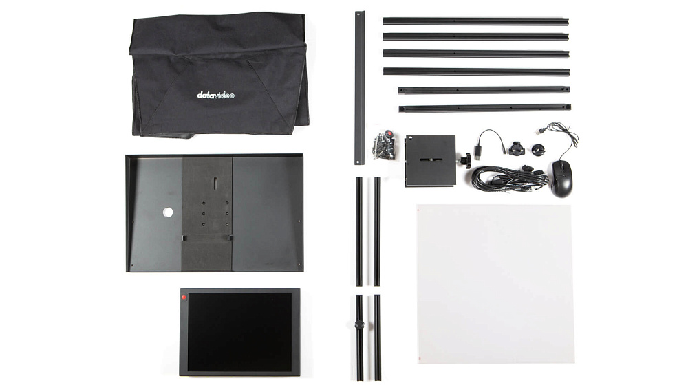 | Содержимое упаковки | 15" LCD-блок управления, универсальный сетевой адаптер 12V, USB-мышь, Ethernet-кабель 5 м, адаптер 3,5 мм для пульта WR-500, металлическая базовая платформа с площадкой для штатива, пантографический подъёмник 150x150 мм, тканевый защитный кожух, шестигранный ключ M4 CRV, винт-барашек ¼" 9 мм с красной точкой, винт-барашек ¼" 9 мм с шайбами, 8 винтов M6x40 мм, 10 винтов M6x14 мм, винт 16 мм, переходник 3/8" на ¼", 4 вертикальных экструзии 565 мм, 2 горизонтальных экструзии 475 мм с угловыми соединителями 90°, 2 экструзии-держателя стекла 325 мм с заглушками, 2 экструзии подъёмника PTZ 250 мм с заглушками, светоделительное стекло 70/30, опорная штанга для стекла, 2 запасные чёрные заглушки, 2 запасных винта M6x14 мм, 2 кабеля D-Tap 12V, малый и средний шестигранные ключи |
