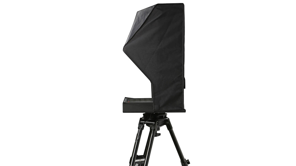 Встроенный 15-дюймовый LCD-дисплей с яркостью 350 нит и приложением dvPrompter Plus формирует полностью автономную систему. Никаких ноутбуков, планшетов или дополнительного ПО: всё уже на борту. Вы просто устанавливаете суфлер на штатив с помощью комплектной металлической базовой платформы, подключаете питание — и система готова к работе. Тканевый защитный кожух с регулируемой шторкой подходит для PTZ-камер любого размера.