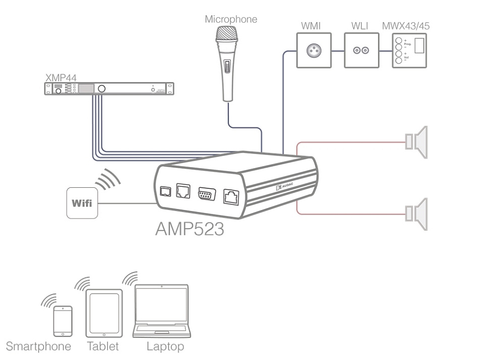 1 – усиленный на громкоговорители 4 Ом / 8 Ом, клеммный блок 1 – линейный: аудиостерео, клеммный блок |
