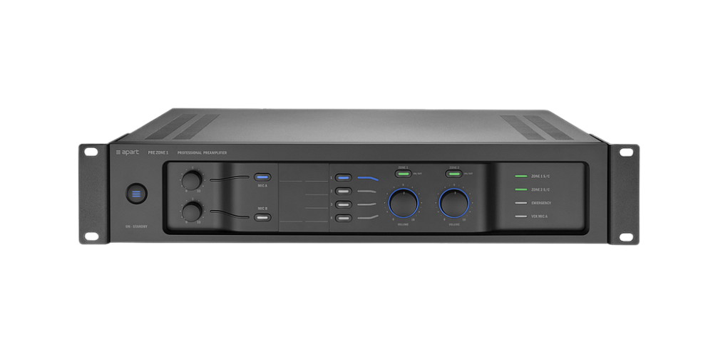 PREZONE1 — это многофункциональный стереофонический предусилитель/микшер, который позволяет независимо управлять громкостью в 2 стереозонах. Он дает возможность легко микшировать уровни 2 микрофонов с одним из 4 источников музыки. Инновационный и чрезвычайно интуитивно понятный дизайн передней панели мгновенно подскажет, как управлять прогрессивным PREZONE1.
