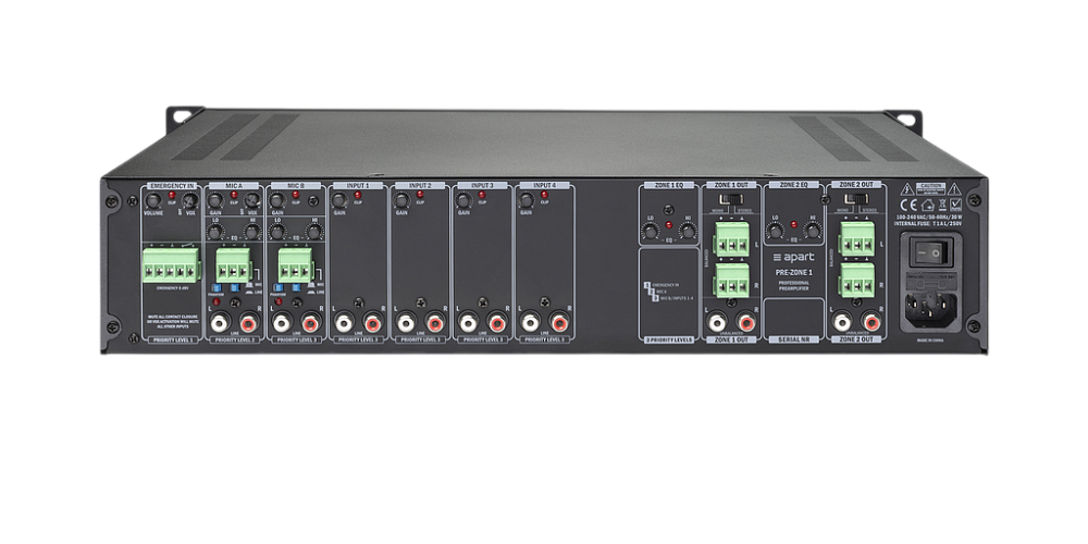 Логичная задняя панель позволит каждому установщику сразу понять, как установить устройство. PREZONE1 легко отличить от конкурентов. Его более высокое соотношение сигнал/шум, простота в использовании, логичный дизайн и универсальные функции для установщиков делают его подходящим практически для любого профессионального аудиоприложения.