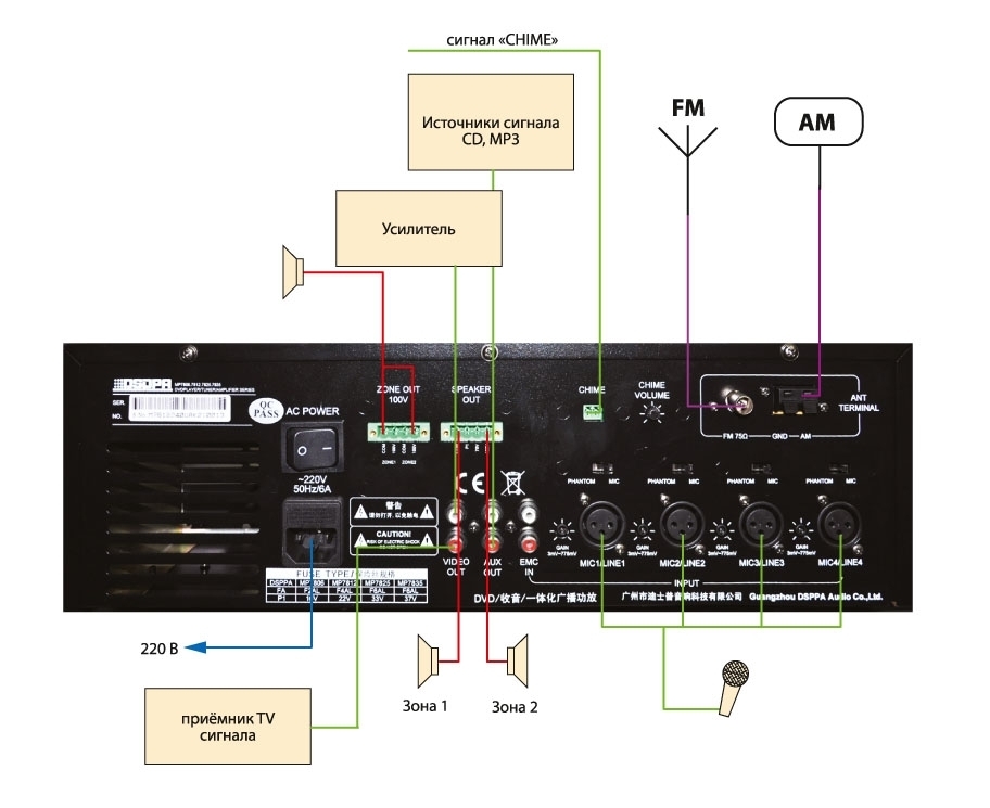 - Приоритет входа MIC1 и сигнала CHIME над остальными входными сигналами