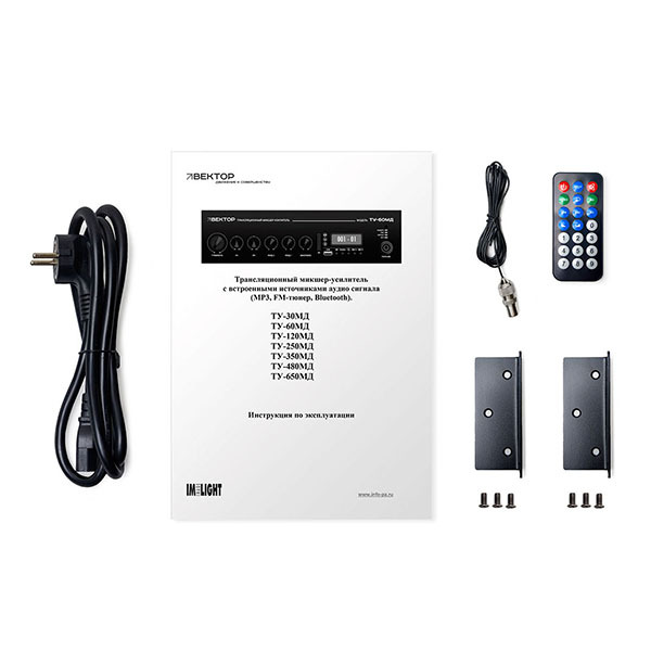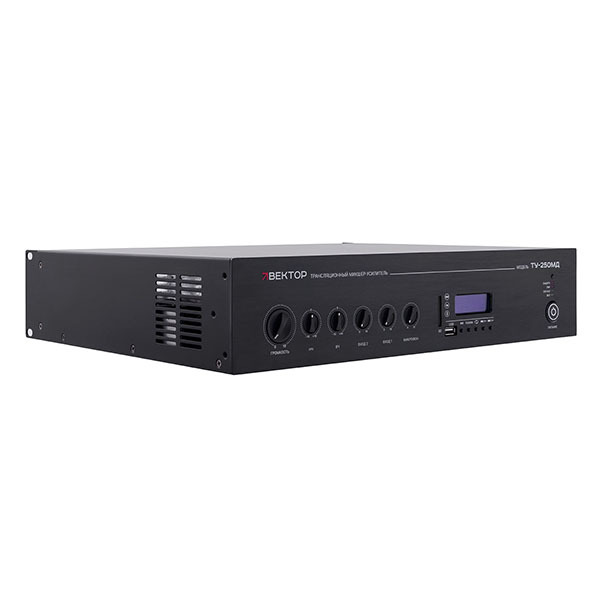 Трансляционный усилитель Вектор ТУ-250МД — комбинированный микшер-усилитель класса D на 250 Вт со встроенными аудиоисточниками (MP3-плеер, FM-тюнер, USB/SD, Bluetooth). Универсальный и 2 линейных входа, приоритет микрофона. Выход 100 В или на акустику 4–16 Ом. Эквалайзер, защита, функция зарядки USB. Рэковое крепление.