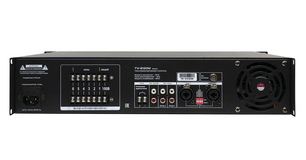 Трансляционный усилитель Вектор ТУ-6120М — комбинированный микшер-усилитель на 6 зон, 120 Вт. Встроенный MP3-плеер, FM-тюнер, Bluetooth. Функция аварийного отключения, двухполосный эквалайзер.